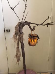 Just has yellow paper inside to represent eerie light. Includes a pipe cleaner tree.