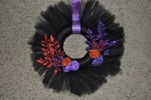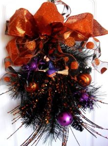 This house is orange and all glittered up. Includes a purple tree and black cat.