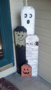 The ghost doesn’t look that scary. The front even has 2 candy corn trees.
