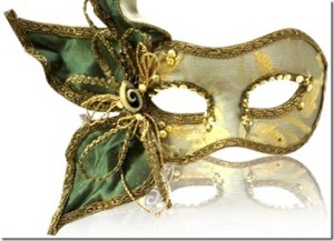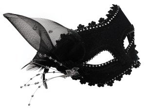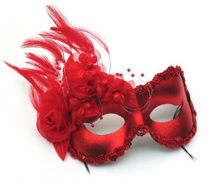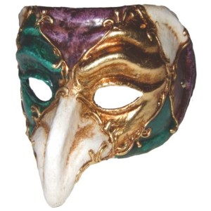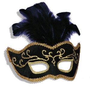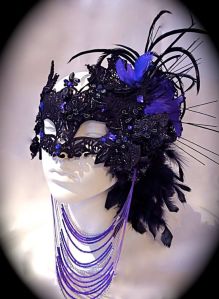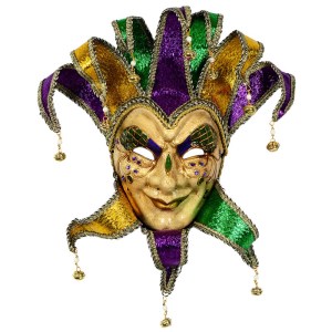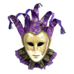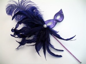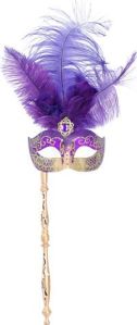 Well, it has a purple mask. Also consists of pom poms, feathers, crowns, and Mardi Gras beads.