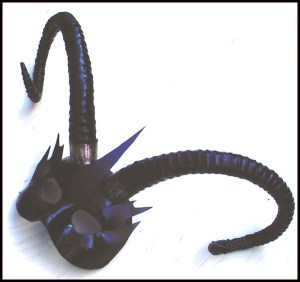 This one uses a guitar handle for the stem. Includes fringe and feathers.