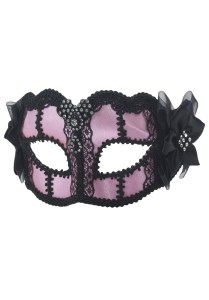 This one has a saxophone with pink plumes along with lace and roses at the ends. Pink fringe lies along the edges. Great for any Mardi Gras party.