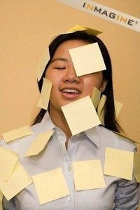 Notice she has nothing written on them. But she doesn’t give a damn since she’s in her happy place.