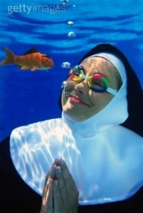 Don’t know how she can be underwater without scuba gear. Not to mention, look serene in that heavy habit.