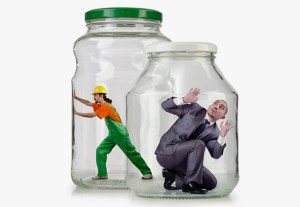 The businessman is especially panicky. The construction worker’s just scaling the walls.