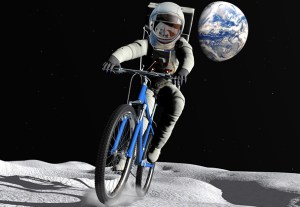 So this astronaut has decided to bike on the moon. Not sure if the tires will retain air in the vacuum of space.