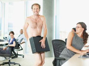 Yeah, that has to be embarrassing. And he only has a briefcase to cover his genitals. Too bad everyone else will see his butt.
