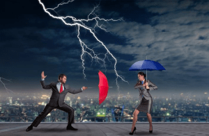 However, they’re attempting a showdown during a thunderstorm. Not the smartest thing to do, especially if lightning strikes one of them.