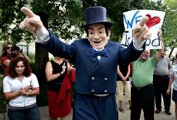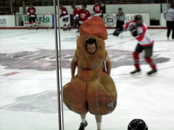 From SBNation: “This is supposed to be a beaver. Nietzsche’s approximation of a beaver, maybe. They were in Canada and all they could think of was to slap a legless, toothless art-deco beaver onto the programs. I guess they’re lucky they didn’t wind up just going with their first idea, ‘Syrupy, the Maple Syrup Bottle.'” And you thought the Montreal Canadien’s mascot was bad enough for this city.