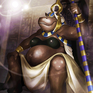 Features: Has a horse’s head and hind quarters as well as front legs and body of a lion. About the size of a donkey with large bony gums stretching from ear to ear. Sometimes depicted with a badger’s head. Sometimes described as part lion, hyena, horse, and badger. Usually portrayed with cloven hooves and making hyena sounds.