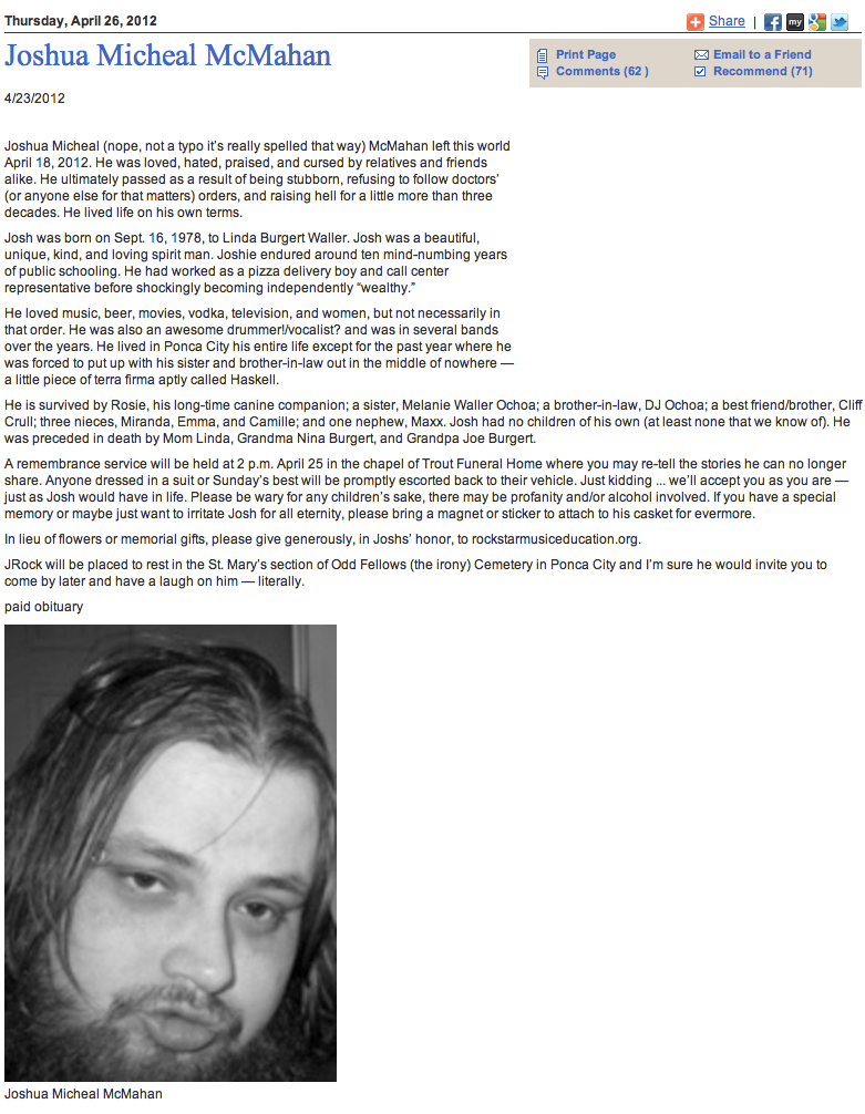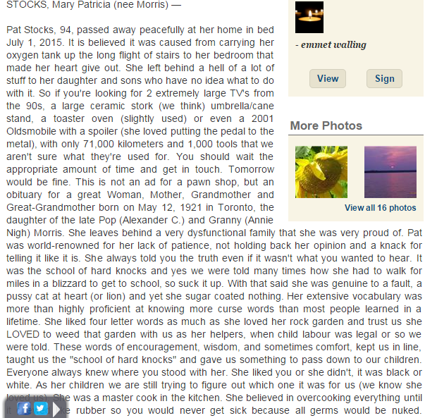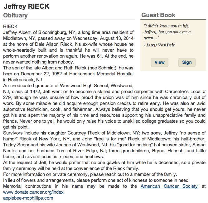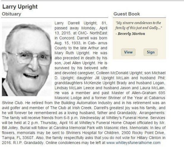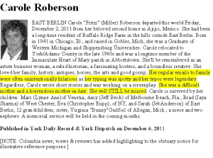Yeah, asking a woman for comment in April is kind of stupid if she died last December. Of course, she wouldn’t be able to comment. Dead people tell no tales.