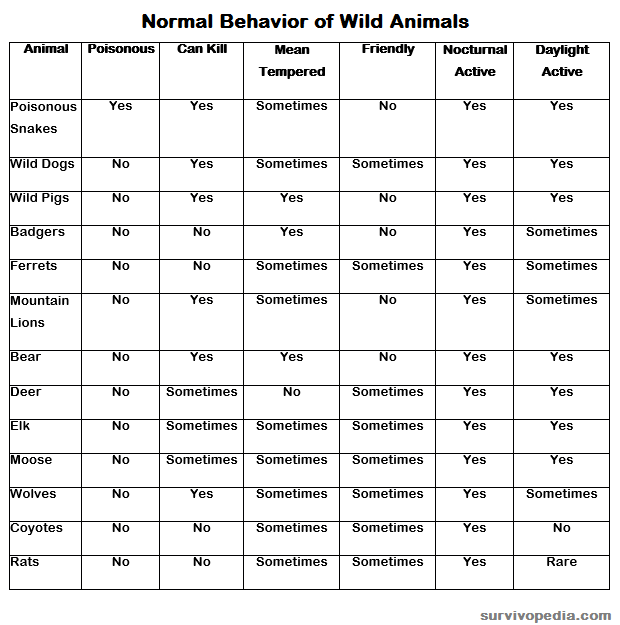 8. Be familiar with wild animals and how they normally act. This table gives you plenty of the reliable information you need on normal wild animal behavior.