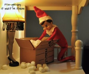 During the holiday season, it’s become a tradition to introduce kids to the modern surveillance state with the ever nebby Elf on the Shelf. Each year, the Elf down from the North Pole to their designated family home where they watch and report to Santa on the children’s behavior during the days leading up to Christmas. After all, how can Santa know whether a child has been good or bad? However, elves being mere individuals aren’t always up to the most impeccable standards. Sure there are plenty of elves who may be on their best behavior. Yet, many do not and some of their deeds aren’t suited for the eyes of innocent children. So parental responsibility calls that parents report bad elf behavior at 1-800-BAD-ELF1. In the meantime, feel free to look at another assortment of shelf elves behaving badly. Enjoy. By the way, these aren’t safe for work.