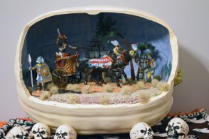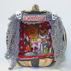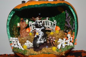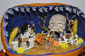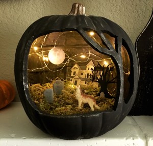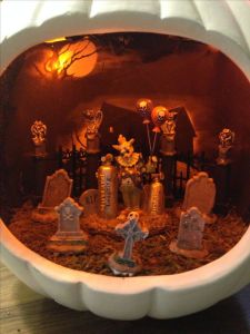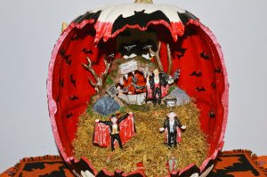 Almost every October for the last five years, my pumpkin diorama posts have always been perennial favorites. As you can see above, these consists of dioramas inside pumpkins. Though I often put them under Halloween decorations, they’re not exclusively so. After all, I’ve put up some pumpkin dioramas relating to Dia de los Muertos and Thanksgiving. Nonetheless, since most of these relate to Halloween, I usually put them there. Not to mention, pumpkin dioramas are often difficult to find. Anyway, for your reading pleasure, I bring you another assortment of pumpkin dioramas for this Halloween season.