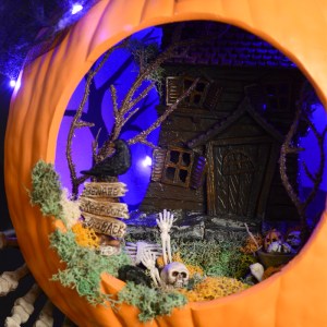Yes, someone made a pumpkin diorama of The Nightmare Before Christmas. Here Jack casually walks his ghost dog.