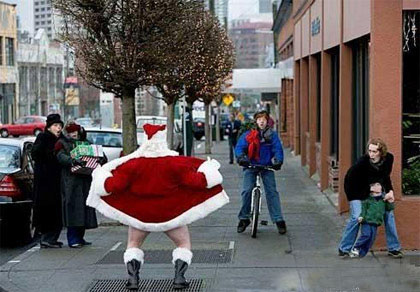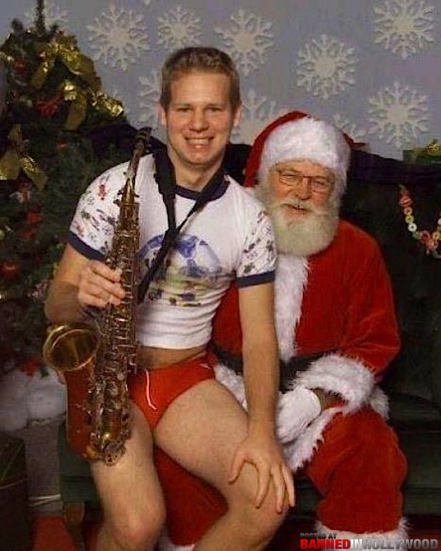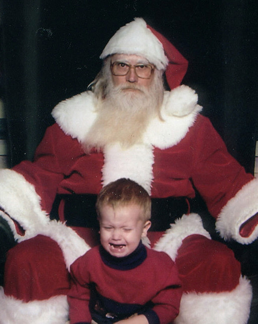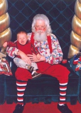 Guess this kid saw Mommy kissing Santa Claus last Christmas. Seems to be a little Grinch in the making.