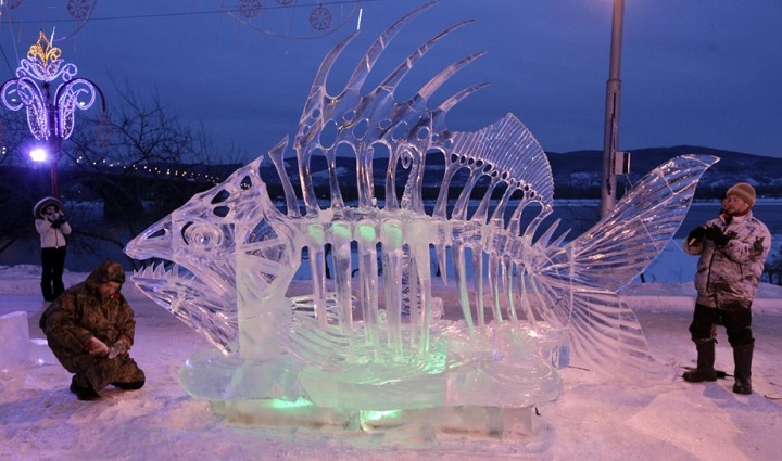 Finally, I get to the last of my annual snow and ice posts with ice sculptures. Unlike the snow sculptures that you might see at a winter carnival, you see these frozen creations during all kinds of occasions. You see them at weddings, dinners, and other extravagant events due to their limited lifetime. Though the ice sculptures you normally see may only be carved from a single ice block. But the ones you can see at winter festivals can range from your single block ice creations to massive ice palaces. During the winter, you’ll find plenty of them on display for festivals and competitions all over the world. So for your reading pleasure, I give you another assortment of artistic ice creations. Enjoy.