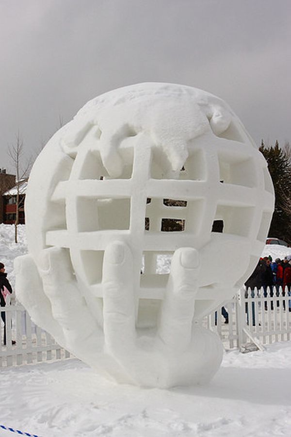 Well, it may seem like a cartoonified globe but still, I wonder how its artist manage to hollow the sculpture out as much as they did. Also, how didn’t this sculpture collapse? Guess snow is that compacted.