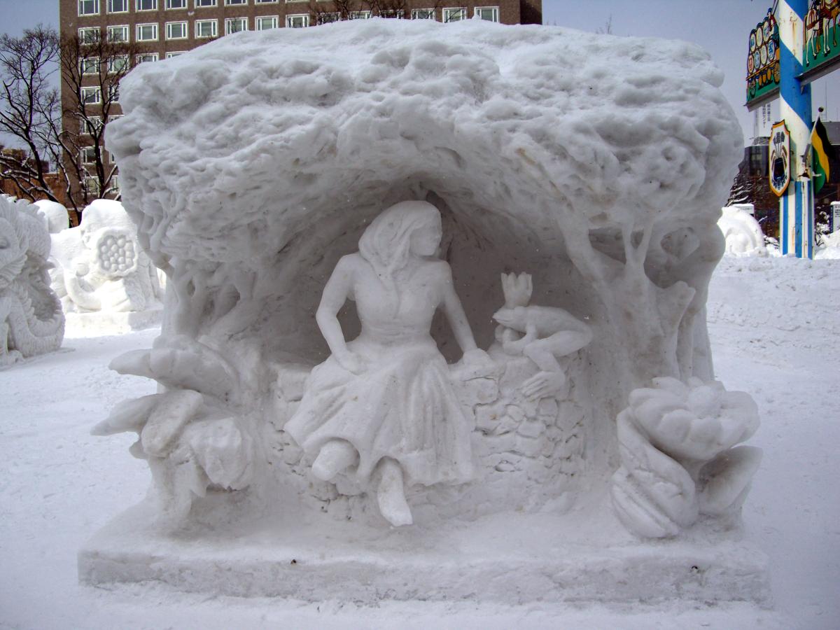 18. Who can forget this snow sculpture of the Grimm Brother’s famous fairy tale, “The Frog Prince?”