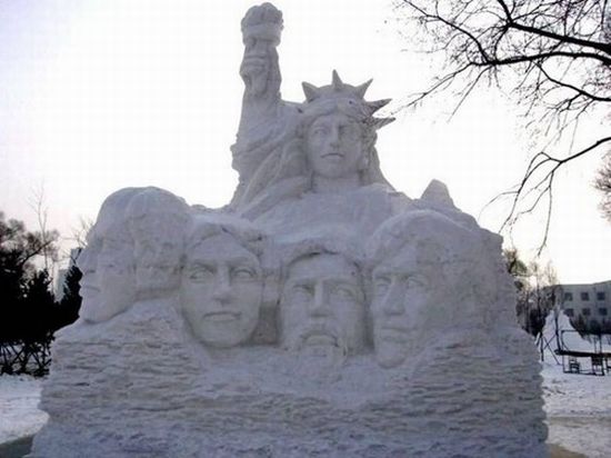 33. Nothing represents American pride more at a snow sculpture contest than one of Lady Liberty herself.