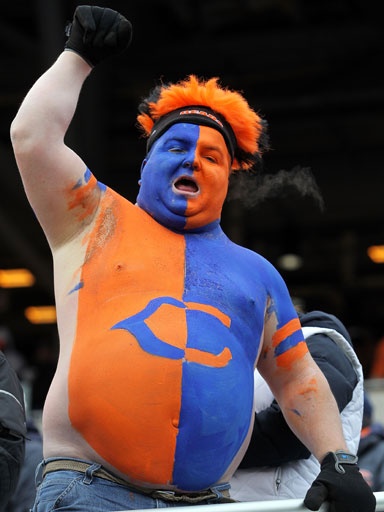 And let’s just say, it’s certainly not working with this Chicago Bears fan. Yeah, he kind of looks ridiculous. But when it comes to NFL fans, it’s the thought that counts.