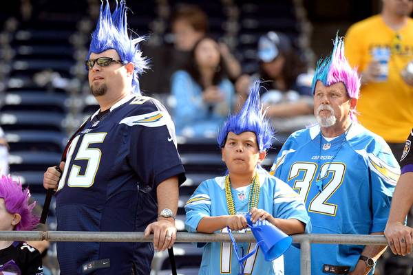 29. Nothing shows your support for the San Diego Chargers than showing up to the game in your brightly colored mohawk wigs.