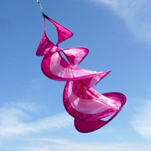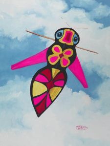 One has pink wings while the other has bluish green. But together they fit on a kite banner quite nicely.