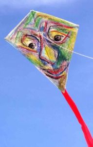 This may be a traditional kite shape. The crayon face on this is creepy.