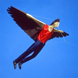 This is an Icarus kite based on Greek mythology. Of course, he probably didn’t wear a shirt and a pair of pants.