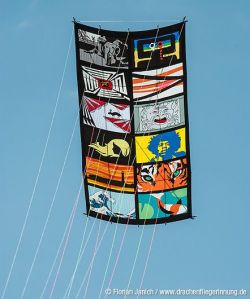 Normally box kites usually have rectangles on each side. But this one takes the box kite to an artistic dimension.