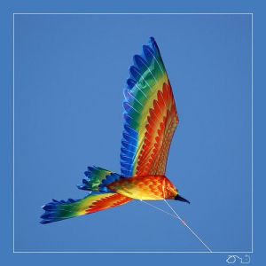 Apparently, you can’t help but look at this colorful bird. Though it’s actually a kite held by a line.