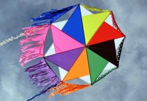 Most box kites are square. But this one is a hexagon since it has all rainbow colors.
