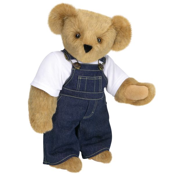 This train engineer bear wears a striped hat and coveralls. But modern train engineers don’t usually wear such apparel.