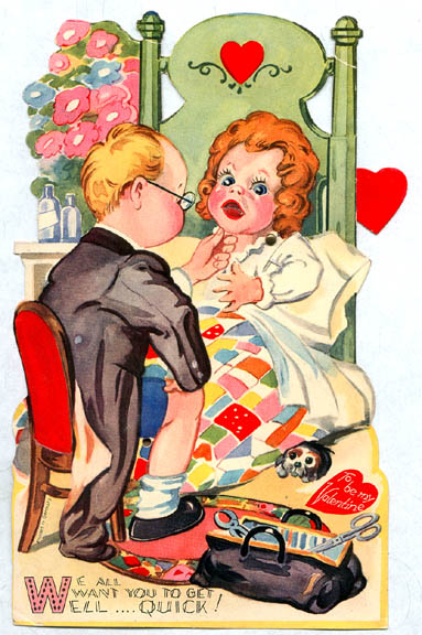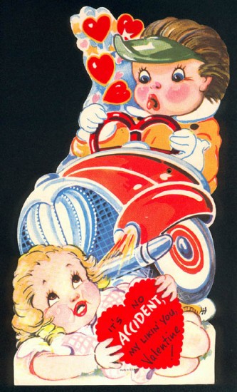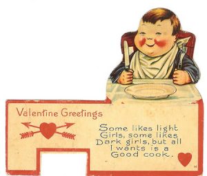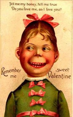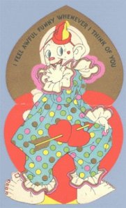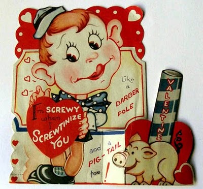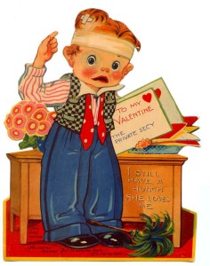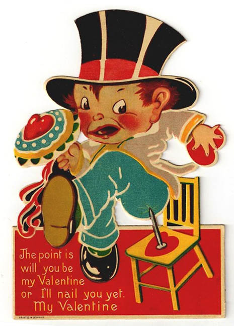 Now that we’re past Martin Luther King Day, we come to Valentine’s Day. Of course, this involves many people to exchange valentines. Kids give theirs to classmates. Adults give them to their sweethearts. Of course, you’ll find plenty of motifs on them like sentiments of heartfelt love, hearts, Cupid, and other images. Yet, there are some old valentines out there that defy explanation. Some that have cutesy images but suggestive puns. And those that surely wouldn’t fly nowadays. Anyway, for your reading pleasure, I give you another assortment of terrible vintage Valentines.