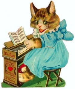 Here the cat has a pack of matches and a cigarette. Great way to be a good example to the kids. Not.